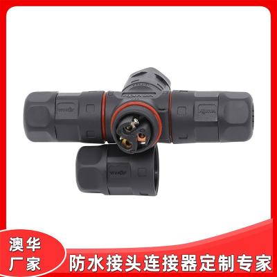 AHUA澳華M25軌道交通防水插頭三通防水連接器免焊接插頭